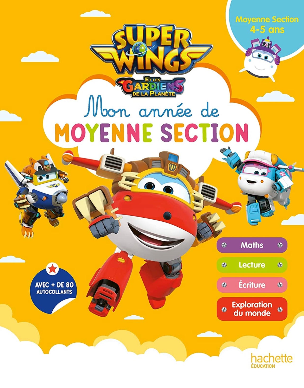 Un cahier complet avec les personnages de Super Wings, pour consolider les apprentissages fondamentaux de la Moyenne Section de maternelle avec des activités ludiques et variées en lecture, maths, graphisme et découverte du monde