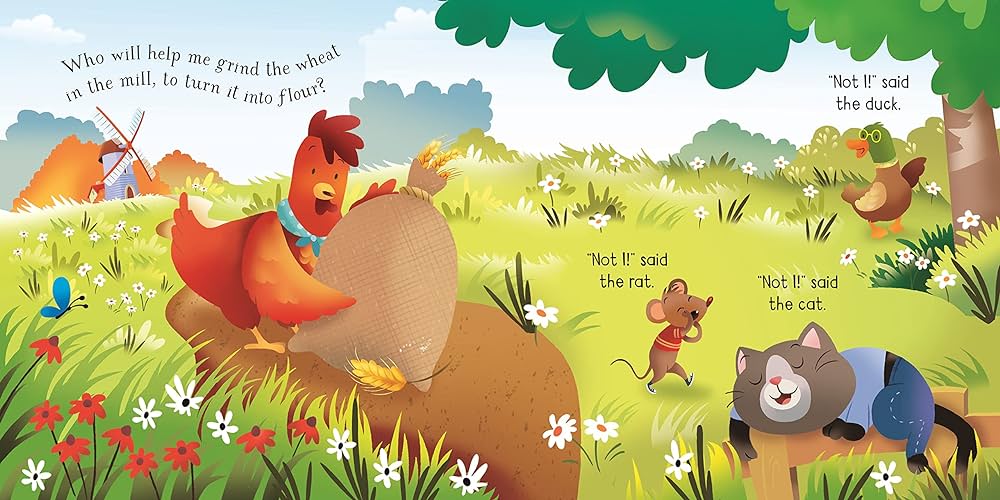 La Petite Poule Rousse a trouvé quelques grains de blé ! Qui l’aidera à les cultiver et à les récolter ? Un récit fidèle du conte populaire européen, montrant les étapes du blé à la farine en passant par le pain fraîchement sorti du four. Avec un audio en ligne gratuit offrant une lecture animée de l'histoire en ligne et de charmantes illustrations de Raffaella Ligi qui offrent de nombreuses choses à repérer et à discuter, ce livre est parfait comme point de départ pour des discussions sur l'aide et l'origine de la nourriture.