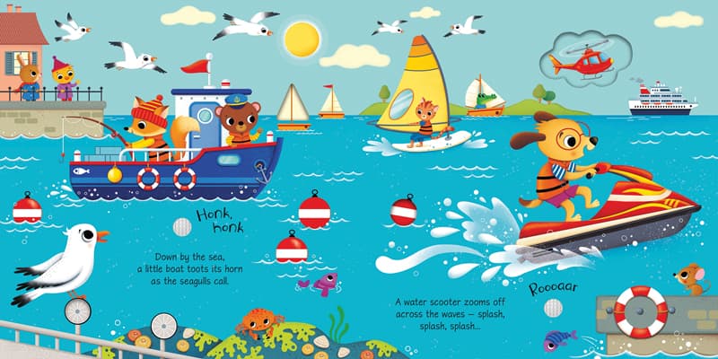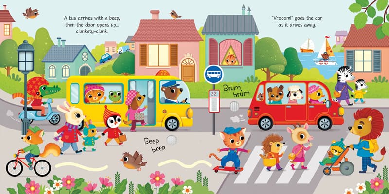 Les petits enfants adoreront appuyer sur les boutons de ce livre délicieusement illustré pour entendre les camions, les voitures, les bateaux, les bus, les tracteurs et les trains prendre vie. Les scènes chargées regorgent de personnages animaux attachants et il y a des trous dans les pages pour regarder à travers ainsi que des traces de doigts que les petits doigts peuvent suivre.