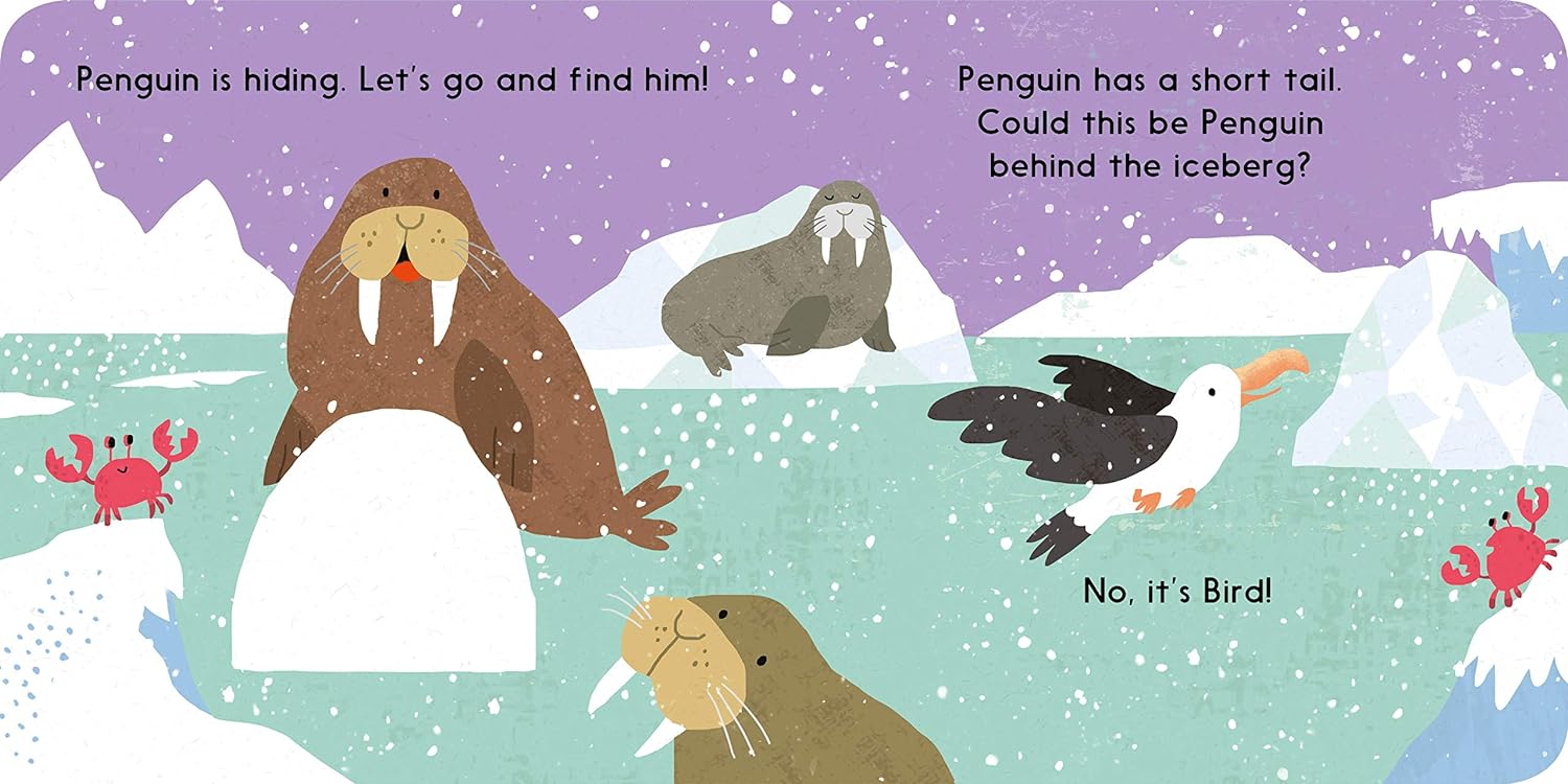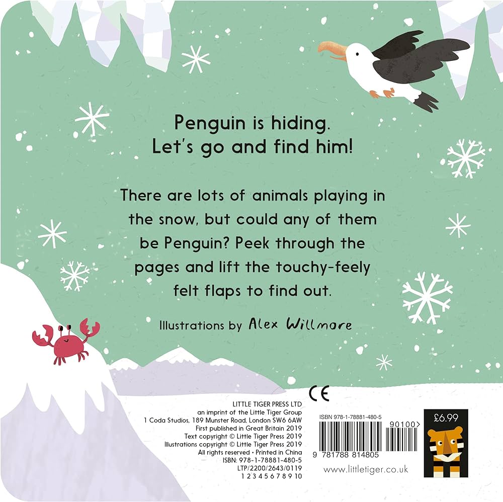 There are lots of animals playing in the snow, but could any of them be Penguin? Peek through the pages and lift the touchy-feely felt flaps to find out!