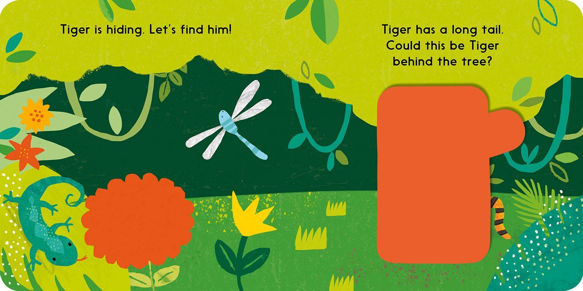 There are animals playing among the trees, but could any of them be Tiger? Peek through the pages and lift the felt flaps to find out!