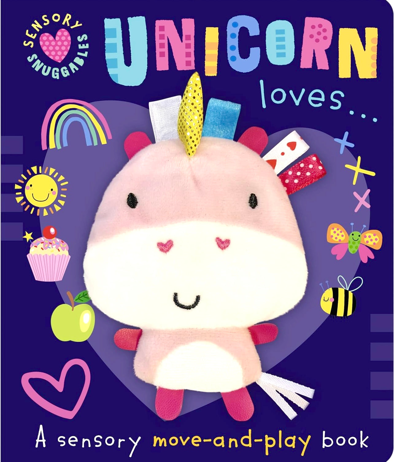 Discover all the things that Unicorn loves in this adorable board book, with a removable unicorn plush toy. This sweet addition to our Sensory Snuggables range combines ribbon tags, mixed textures, and colorful board pages to offer a rich multisensory experience.Little ones will love pulling the unicorn plush off the cover, then attaching it to the heart-shaped Velcro patches throughout the book!